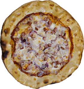 Sos, mozzarella, kabanos, cebula